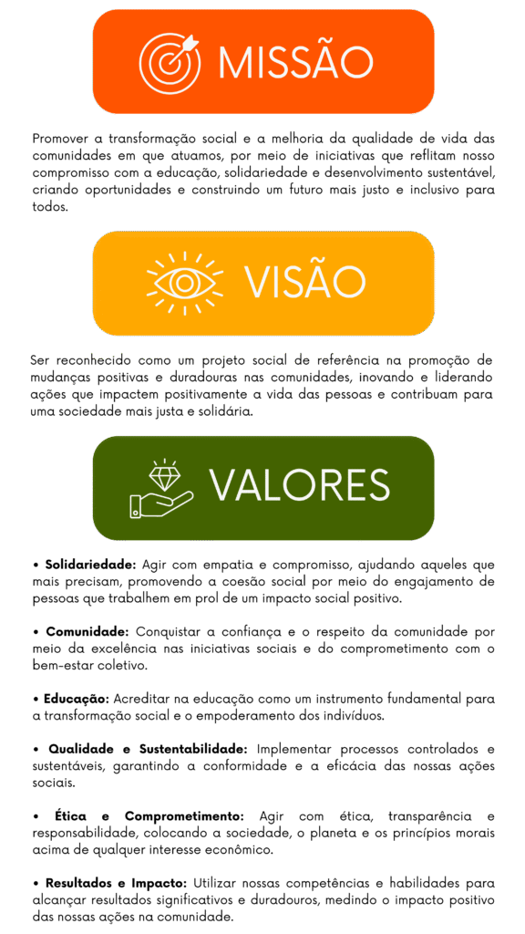 Acreditamos que a educação é um pilar fundamental para a transformação social. Por isso, investimos em programas que promovem o acesso ao conhecimento e ao desenvolvimento de habilidades, capacitando as pessoas a se tornarem agentes de mudança em suas próprias vidas e comunidades. Além disso, nossas ações são pautadas pela sustentabilidade, buscando sempre soluções que respeitem o meio ambiente e promovam o desenvolvimento sustentável.